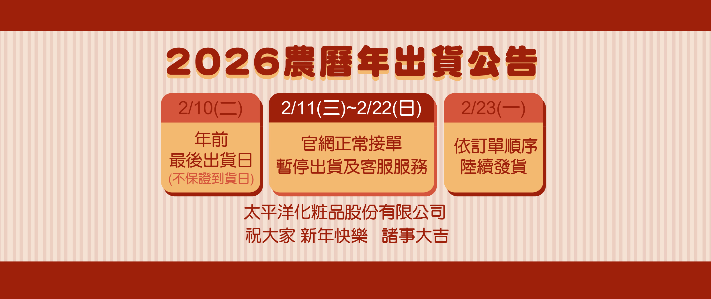 太平洋化粧品祝大家 新年快樂。諸事大吉。